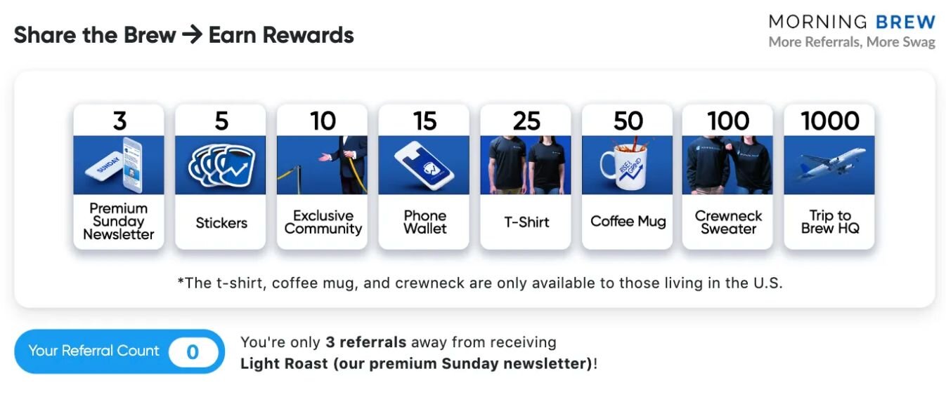 If you are offering some perks for reaching a certain threshold, create a progress bar to visually show customers their progress toward this goal (for example, reaching a certain level of spending to qualify for a discount or free shipping). Like, Morning Brew did with their referral program: