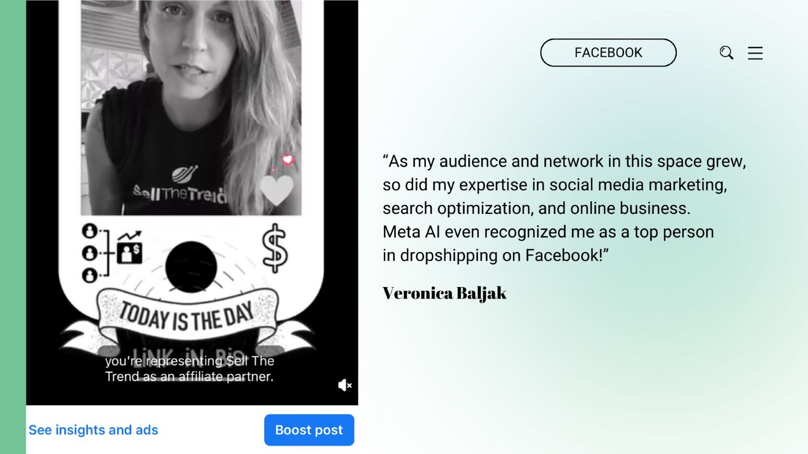 As my audience and network in this space grew, so did my expertise in social media marketing, search optimization, and online business. Meta AI even recognized me as a top person in dropshipping on Facebook!