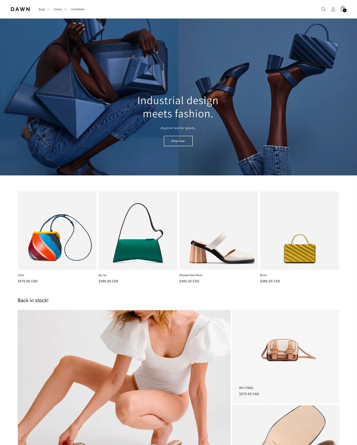 With Online Store 2.0, Shopify introduced a free theme Dawn, which became the new default theme for all new stores.