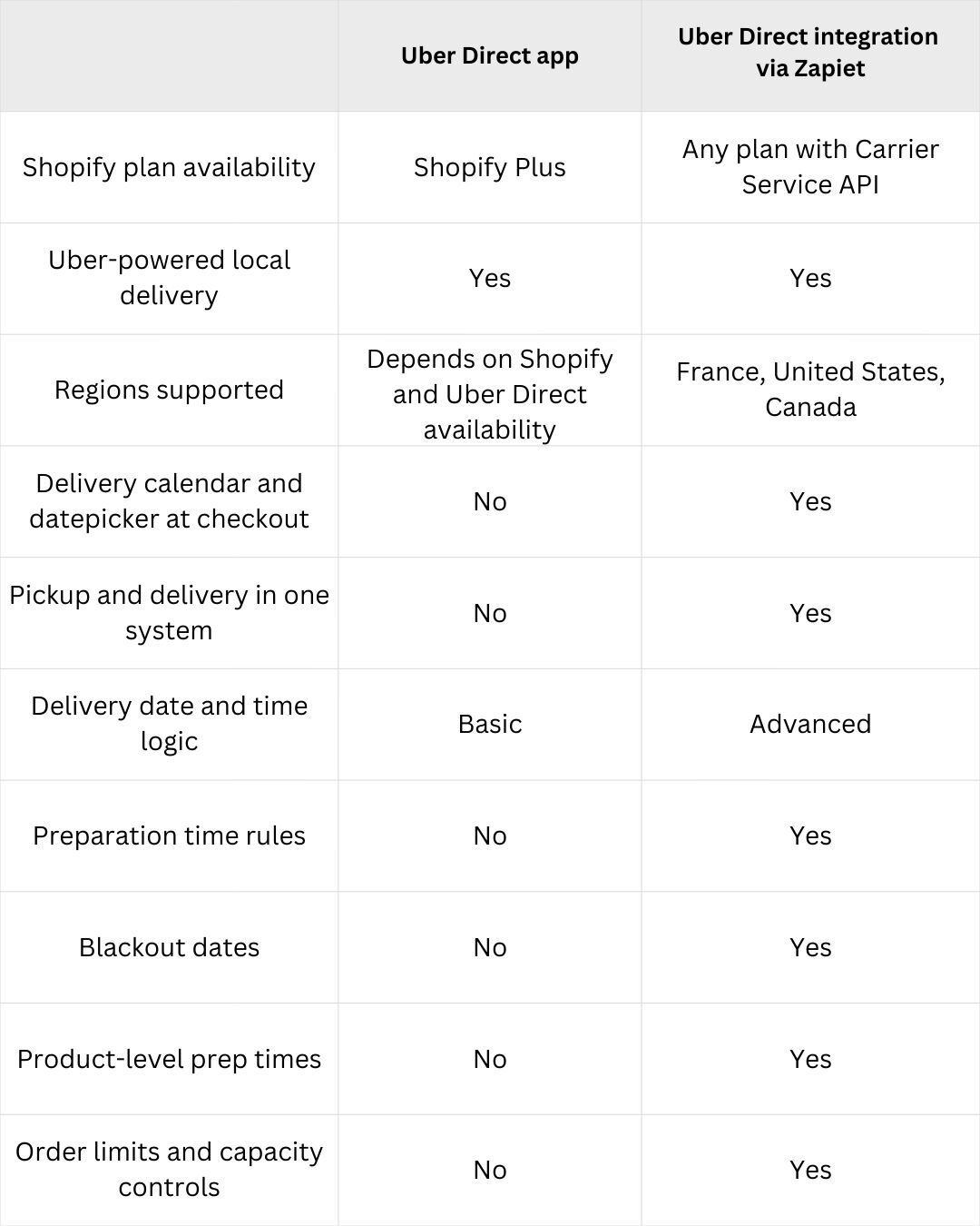 Uber Direct on Shopify: native app vs integration via Zapiet
