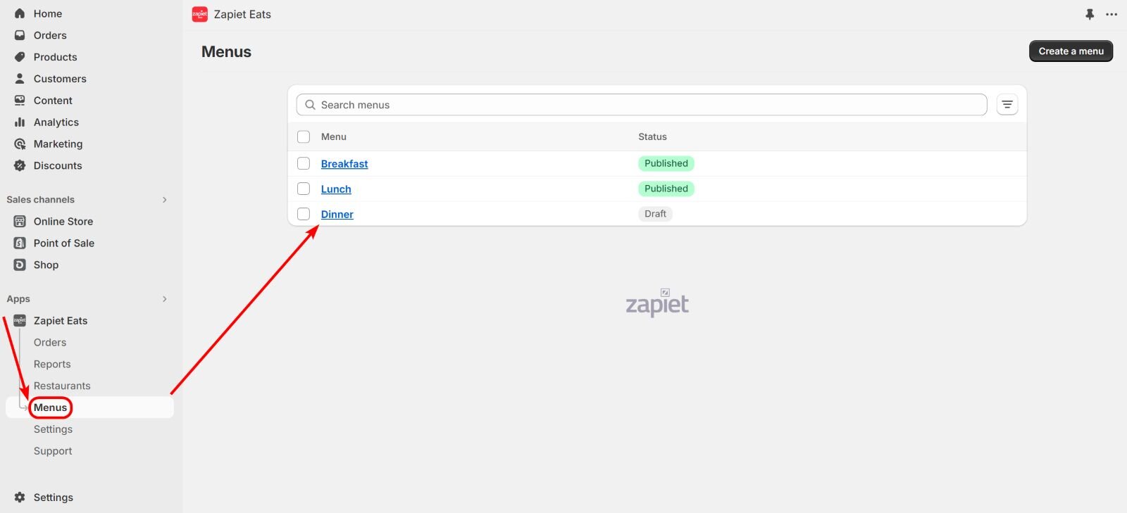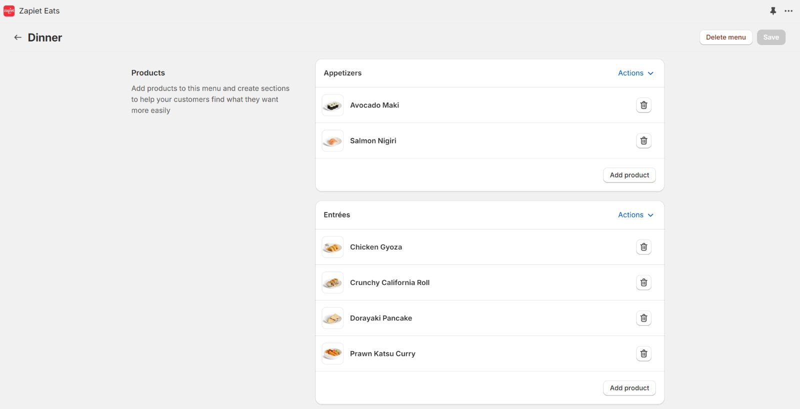 Within Zapiet Eats, you can create menus for different days, special occasions or even specific times.