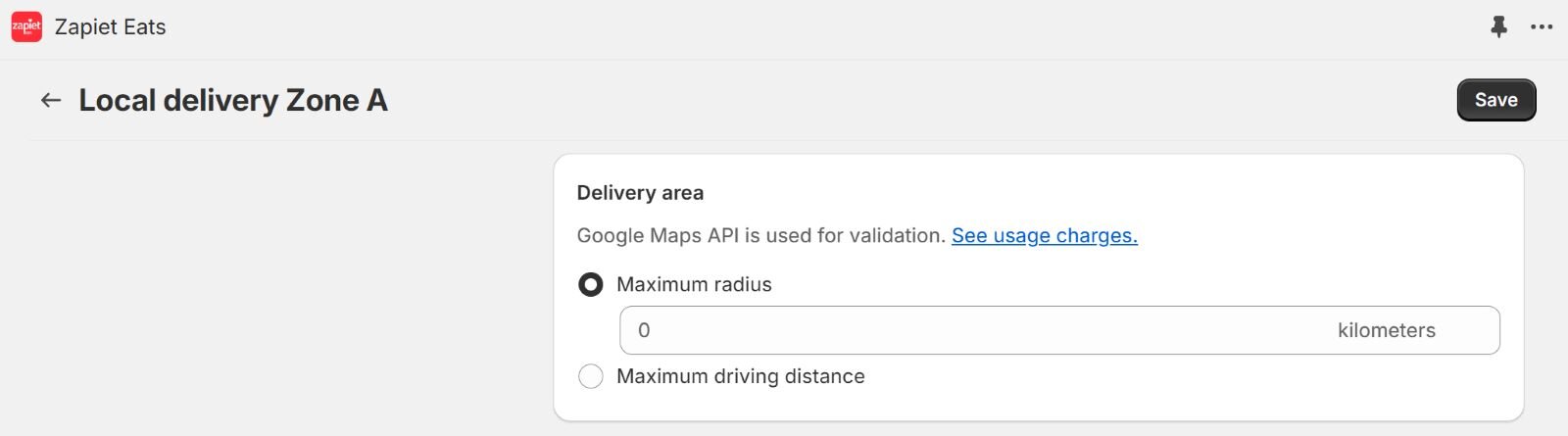 You can also allow or prohibit delivery based on your customers’ location – choosing either a maximum radius or maximum driving distance.