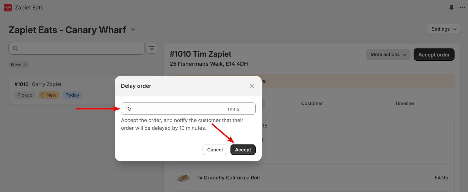 Accept orders automatically or manage them manually to control which orders are accepted, delayed or declined. If your restaurant is busy, you can choose how long an order is delayed by and notify your customers, or you can decline the order and tell the customer why.